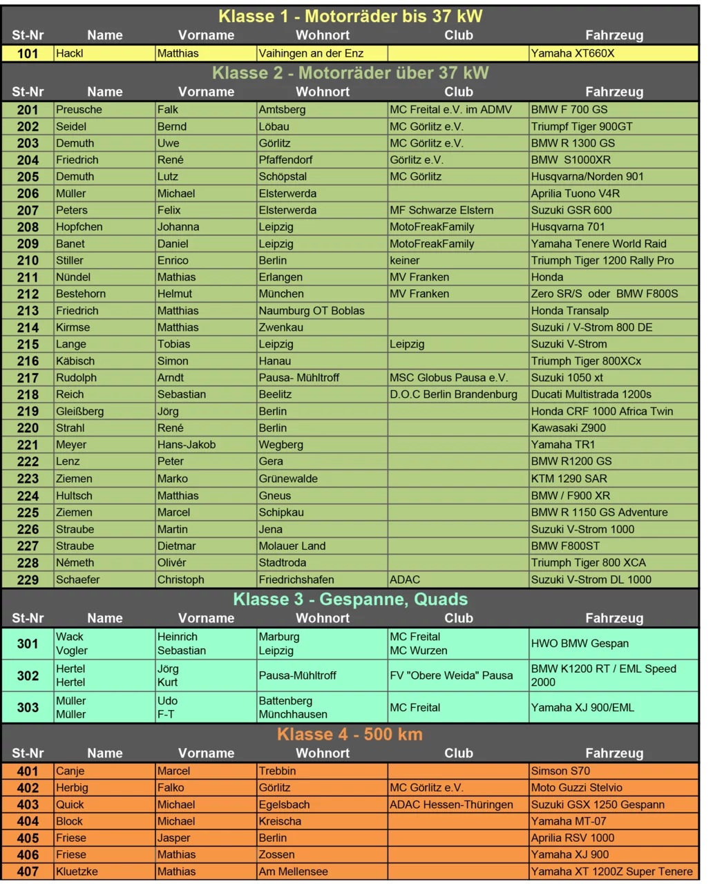 Starterliste zur 53. ADMV-Langstreckenfahrt
